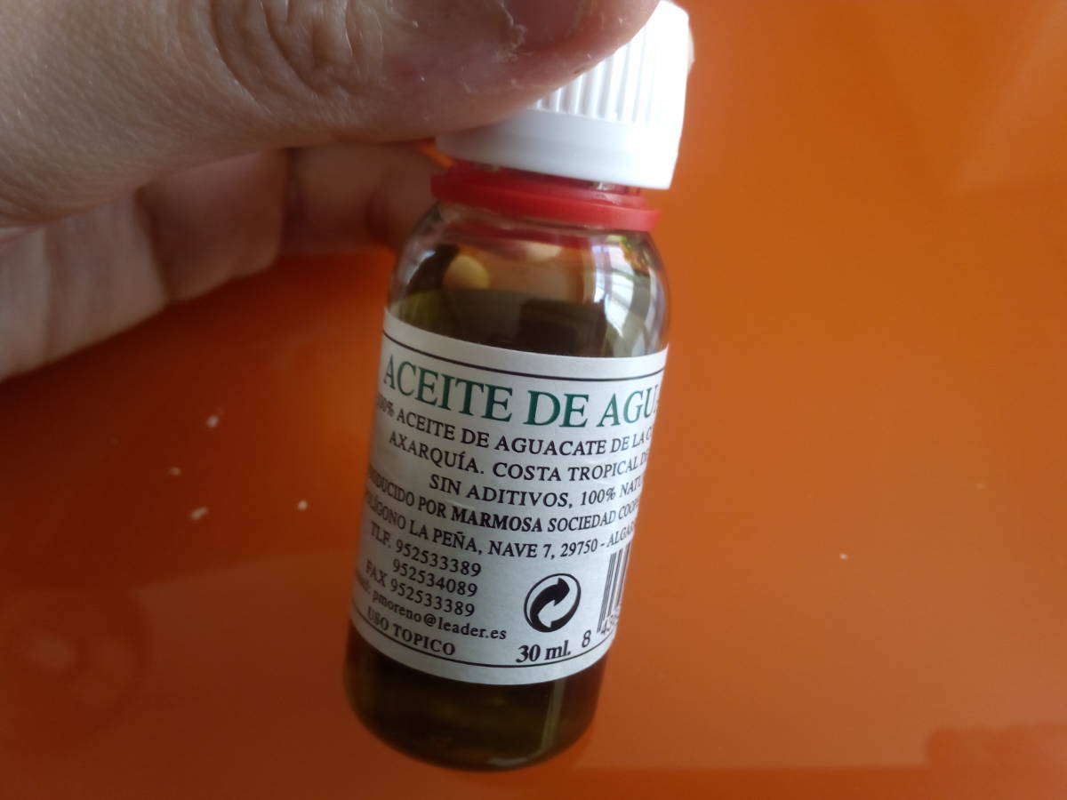 4º.- Aceite de aguacate natural (10 unid, 30 ml, 12€ sin IVA).